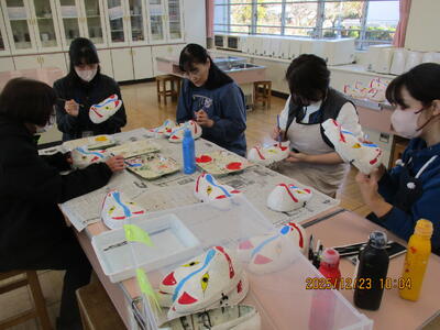 写真①荷物を一杯持って笑顔で下校する子供たち。②全校朝会の「大切な自分を守るため」のお話しを真剣に聞く子供たち。③2月の市の音楽会には一の谷の伝統文化で登場します。④家庭科室ではポップコーン作り。コーンも子供たちもはじけて大盛り上がり。⑤⑥各教室ではみんな頑張ったご褒美のお楽しみ会。⑦6年生の教室をのぞいてびっくり!巨大な私の顔が・・・ちょっと怖かったけど嬉しかったです・・・⑧家庭科室では支援スタッフの方々がお面の修復。チーム一の谷最高です!⑨放課後は先生方の事故防止の研修会。