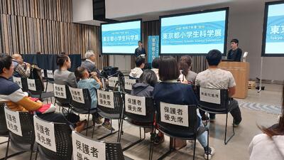 先週末には「東京都小学生科学展」が開催され、本市の代表として6年生の森田君が、東京多摩未来メッセで「環境における氷の溶け方」について研究発表してきました。(写真①②)