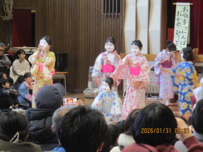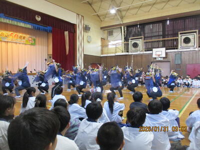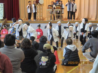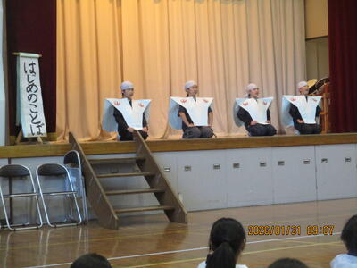 本日1月31日(土)、創立50周年を飾る伝統文化発表会が開催されました。この取組は本校の特色ある教育活動として、この引田の地に400年以上引き継がれてきた伝統と文化を学ぶ機会となっており、一昨年には、東京都教育委員会より、この取組に対して表彰していただきました。今日は、子供たちがこれまで頑張った成果を一番見てほしい保護者や地域の皆様に思い切り発表することができました。