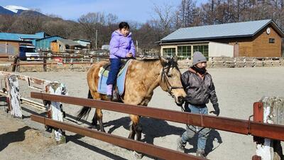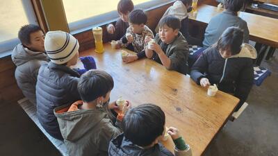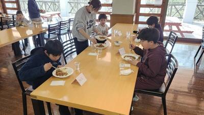 2日目、今日も快晴。布団をたたむのも自分たち。朝ご飯を食べたら、滝沢牧場へ出発。今年は乗馬に挑戦(③)。動物と触れ合ったり(④)、美味しいソフトクリームを食べたり(⑤)、たくさんの貴重な体験をしました。最後に宿に戻ってお昼ごはん(⑥)。お腹も学びも、そして思い出もいっぱいにして帰ってきました。おかえり!