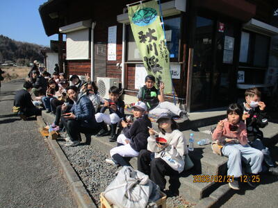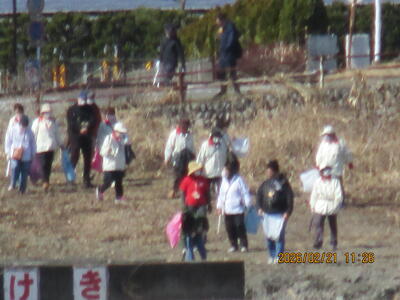 写真①はじめの会の様子。今年も過去最高の参加者数とのこと。 ②チーム一の谷小も「さあ、出発!」 ③A,Bチームに分かれてごみ拾いがスタート。 ④みんな、いろいろなところに分かれてごみ拾い。 ⑤秋川の向こう側まで行ったグループも。 ⑥不法投棄されたものなど、粗大ごみもたくさん見つかりました。 ⑦「こんなに拾ったよ。」とガッツポーズ、とてもよく頑張りました。 ⑧最後に、参加者全員で、集めたごみの山といっしょに記念写真を撮りました。 ⑨終了後は頑張ったみんなに、おにぎりと秋川名物だんべえ汁が待ってました。 ⑩協力してくれたみんなへの感謝が込められた味は格別です。 ⑪頑張ったからなおさら美味しかったね!