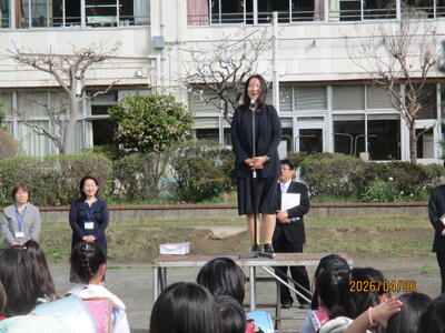 桜舞う中、本日24名の新入生が入学し、全校児童175名で令和8年度の一の谷小学校がスタートいたしました。本校は、昨年創立50周年という大きな節目を大成功に終え、本年は新たなスタートの年となります。学校、保護者、地域が一体となって、子供たちが主役のウェルビーイングな学校を作っていきたいと思います。