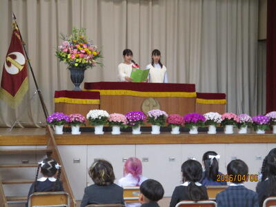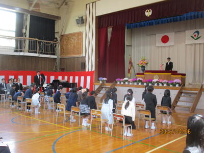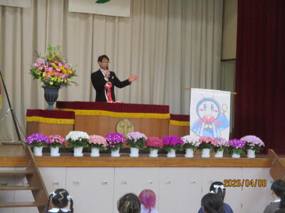 4月6日、桜舞う中、一の谷小学校の新たな歴史のスタートとなる第51回入学式が行なわれました。入学式では、本校のキャラクター「ほたるん」のように、優しいがんばり屋さんになろうとお話ししました。1年生は全員が最後まで立派に式に参加することができました。今日から元気一杯笑顔一杯、登校しています。