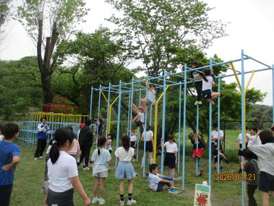 本校では体力向上の取組として年に9回の「ぐんぐんすくすく大作戦」を実施しています。これは、6つの体力(投力・握力・跳躍力・持久力・瞬発力・走力)を伸ばすコーナーの中から、子供たちが必要な運動を自身で選んで挑戦するものです。「心も体もぐんぐん、そしてすくすくと育て!」との思いが込められています。来月には運動会が予定されています。健康で強い体を目指して頑張っています。