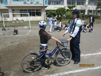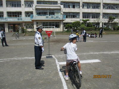 先週の避難訓練に続いて、4月17日(金)と20日(月)に交通安全教室が行なわれました。17日は1~3年生向けの交通安全教室が行われ、実際に校庭に書かれたコースで、1・2年生は安全な歩行について学び(写真①②)、3年生は自転車の乗り方や安全について学びました(写真③④⑤⑥⑦)。20日は、4~6年生を対象に自転車シミュレーションを活用した交通安全教室が行なわれ、自転車の安全な運転について学びました。(写真⑧)大切な命を守る学びだけは、100点満点を目指します。